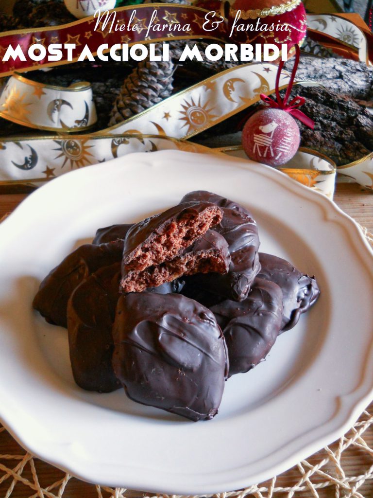La recette des mostaccioli dont je voudrais vous parler aujourd’hui n’est pas celle de Naples. Ceux que j’ai préparés ont la même forme, mais sont plus tendres, plus riches en épices et incluent la présence de blancs d’œufs dans la pâte. Selon la recette à laquelle je me suis inspirée, et dont la page internet n’existe plus, ces mostaccioli devraient être une spécialité de Castel di Sangro. Je ne sais pas si c’est réellement le cas, car je n’en ai jamais entendu parler, ni eu l’occasion de les goûter sur place; je le rapporte ici juste par souci de précision et à titre informatif. C’est un dessert qui doit reposer au moins quelques jours avant d’être dégusté. Ce n’est que de cette manière que toutes les épices donneront aux mostaccioli cette saveur, ce parfum, qui les caractérise de manière inimitable, même sans couverture de chocolat. La préparation est très facile. On peut les pétrir à la main et les découper avec le petit outil en forme de losange prévu à cet effet, ou les couper en losanges. Je les prépare toujours à Noël et ils peuvent devenir une excellente idée cadeau, en les emballant dans de petites boîtes ou sachets transparents adaptés à cet effet.