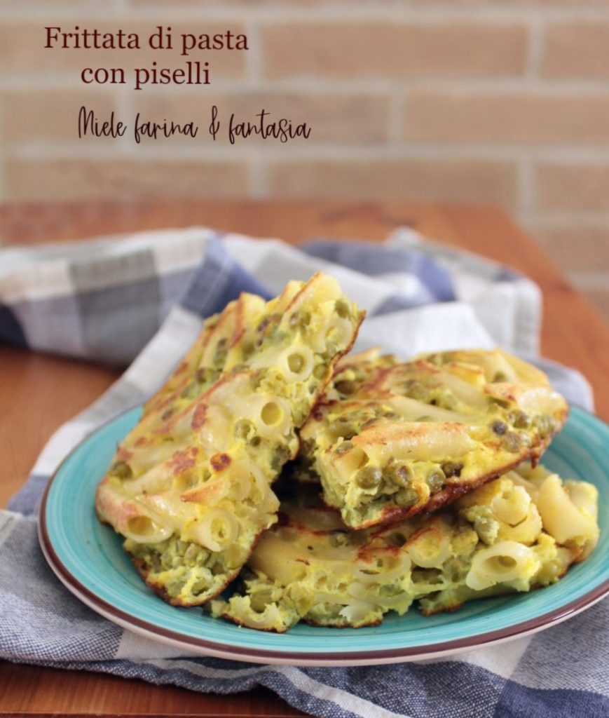 Les omelettes de pâtes sont des plats principaux finger food très savoureux, riches, parfaits pour utiliser les restes de préparations précédentes ou simplement ce que nous avons à disposition dans le garde-manger et le frigo, comme c’est le cas pour cette délicieuse omelette de pâtes avec des petits pois. Il s’agit, en effet, d’un plat unique réalisé avec ce que j’avais à disposition; très facile, colorée, parfumée. Elle peut être personnalisée avec d’autres ingrédients, et est très pratique, car elle se prête à être mangée avec les mains aussi bien tiède que froide à la maison, à la plage ou pour une sortie en plein air.