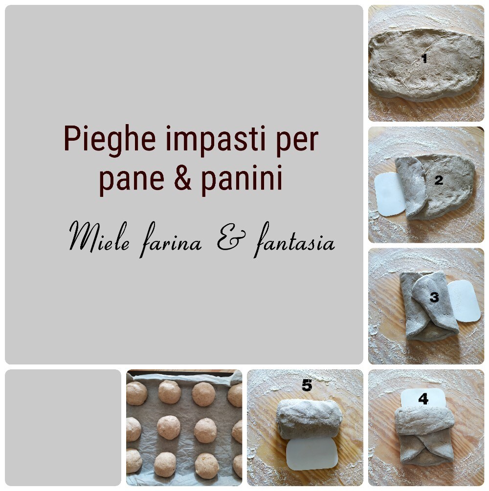 Après une heure, étalons le pâton délicatement avec les mains, comme pour former un rectangle, et faisons-lui des pliures comme indiqué sur les photos.