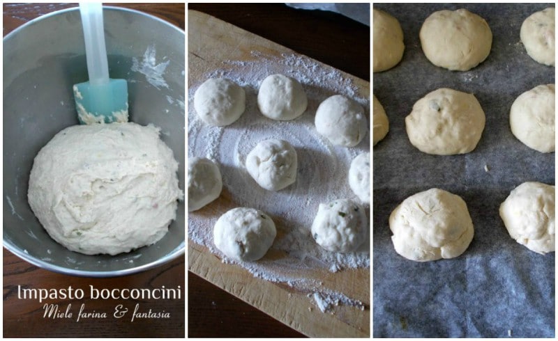 En nous aidant d’un peu de farine (ou en huilant nos mains), divisons la pâte en boules d’environ 30/35 grammes que nous placerons sur une plaque recouverte de papier sulfurisé, en les espaçant d’environ un doigt l’une de l’autre. Laissons-les lever jusqu’à ce qu’elles doublent de volume.