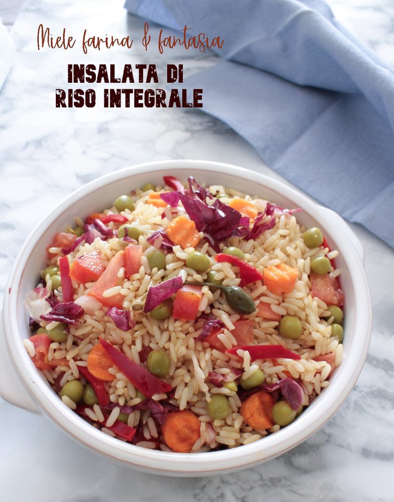 La salade de riz complet avec légumes est un plat principal simple, complètement sans gluten ni lactose, nutritif et léger à la fois, avec un goût plus rustique et plus prononcé que la classique salade de riz. Il s’agit d’une recette polyvalente, qui peut être préparée en été et aussi comme déjeuner à déguster hors de la maison, lorsque nous sommes au travail, par exemple. Le riz complet, on le sait, est bien plus sain que le riz blanc raffiné, car il conserve intactes toutes ses propriétés bénéfiques. On trouve également dans le commerce du riz complet « parboiled », qui a des temps de cuisson nettement inférieurs. Nous pouvons personnaliser cette salade comme nous le souhaitons, en ajoutant de la mayonnaise, du jambon de dinde ou du thon, du saumon fumé, des olives, des tomates, etc… Je recommande de préparer ce délicieux plat à l’avance, en tenant compte à la fois des temps de cuisson du riz complet et du fait que la salade doit s’imprégner de saveurs.