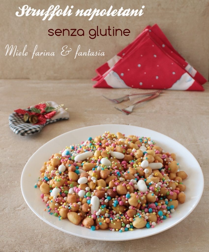 Les struffoli napolitains sont des petits gâteaux de Campanie que l’on prépare pendant les fêtes de Noël. Aujourd’hui, tout en restant dans le cadre traditionnel en ce qui concerne les ingrédients et le procédé, nous parlerons de struffoli préparés avec de la farine sans gluten, adaptés aux cœliaques et pas seulement, car ils sont délicieux, très faciles et n’ont rien à envier aux classiques. Les struffoli napolitains sans gluten, tout comme les plus classiques, de la tradition paysanne, ne contiennent ni lactose ni levure chimique.