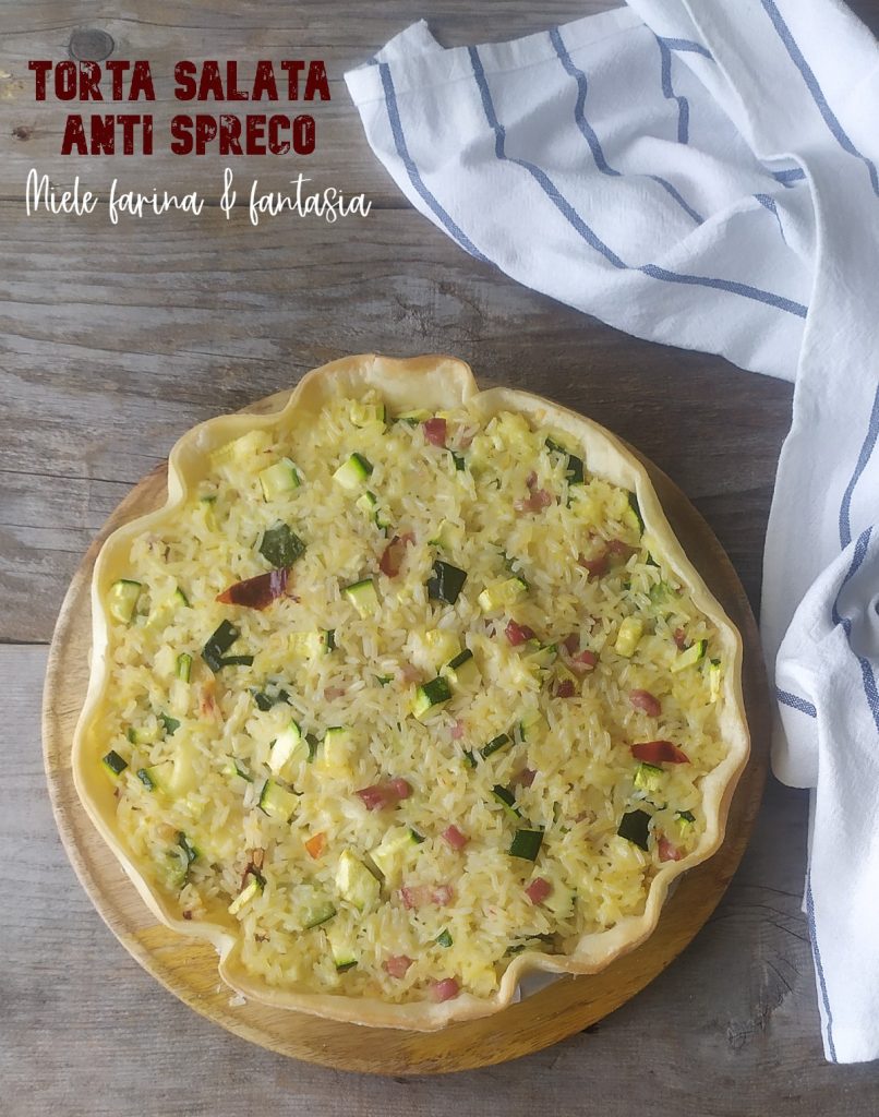 Après les fêtes, il reste toujours des restes ou des aliments à consommer ou à éliminer. Je parle de charcuterie, fromages, mais aussi de viande, poisson, conserves dans l’huile ou de légumes. En général, je les recycle dans des préparations salées comme des quiches, des cakes salés, des sauces, des crèmes, des tartes rustiques, des plats de pâtes, et ainsi de suite. Aujourd’hui j’ai préparé cette tarte salée avec une base de pâte feuilletée, garnie de riz et de restes de charcuterie, fromages et légumes, cuits ou crus. Cette recette peut être personnalisée comme vous le souhaitez avec tout ce que vous avez déjà chez vous.