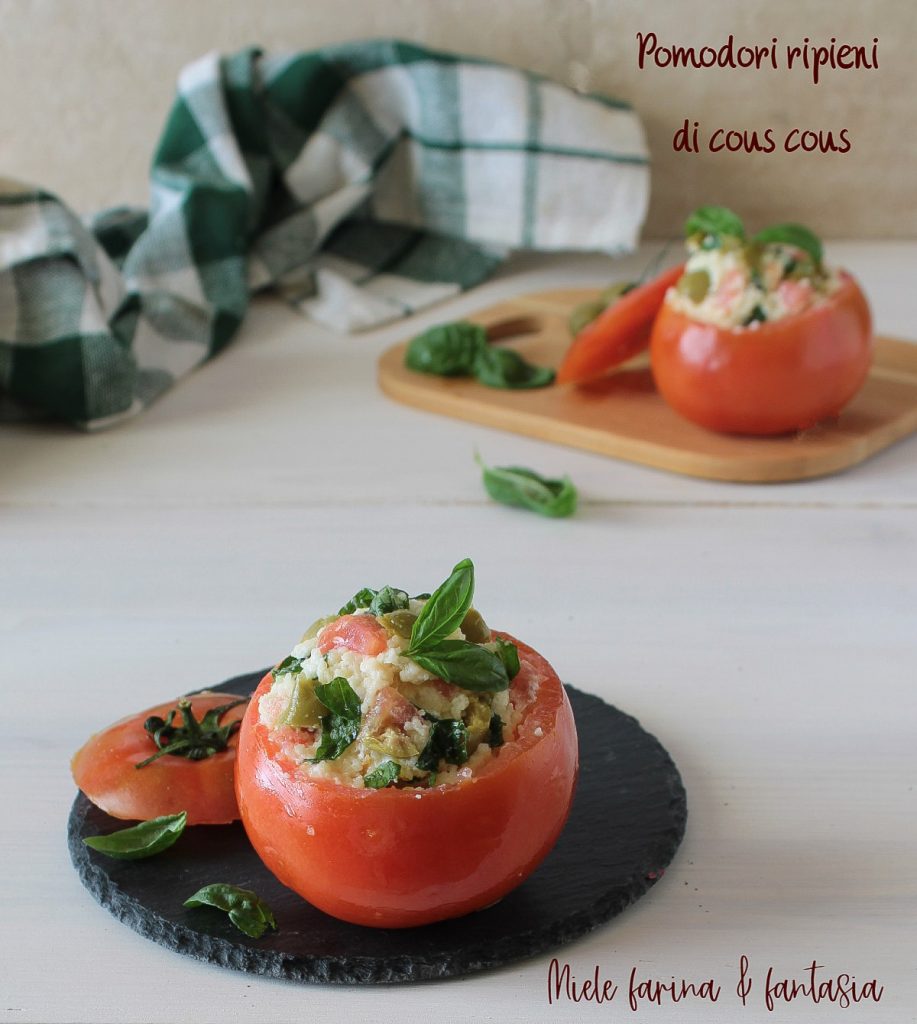 Les tomates farcies au couscous sont un plat principal végétarien d’été facile et rapide, à préparer avec peu d’ingrédients et à personnaliser selon vos goûts et ce que vous avez dans le réfrigérateur. C’est un plat visuellement impressionnant, très savoureux, coloré, frais, parfait aussi comme déjeuner à déguster froid lorsque vous êtes hors de la maison. Les tomates sont agrémentées d’une crème à base de fromage frais et de basilic (le persil peut être utilisé à la place du basilic) qui rendra la préparation très savoureuse et parfumée avec une note de fraîcheur qui se marie bien avec les autres ingrédients. Les tomates farcies au couscous sont également parfaites pour un buffet froid.