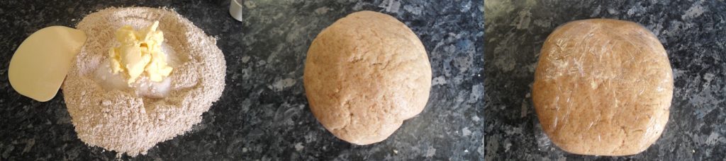 J’avais déjà aimé lire parmi les ingrédients la farine complète mais j’ai aussi remarqué la margarine légère : je ne savais pas qu’on pouvait l’utiliser pour faire de la pâte sablée. Par margarine légère, j’entends celle avec un pourcentage de matières grasses d’environ 40%, tandis que le beurre ou la margarine traditionnelle en ont environ 80%. Évidemment, il faut choisir une bonne margarine sans graisses hydrogénées, généralement dans les magasins bio, plusieurs marques sont disponibles.