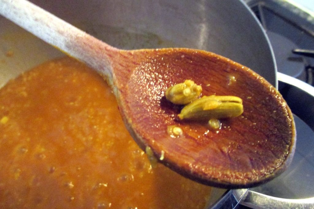 N’oublie pas de retirer les baies de cardamome avant d’ajouter les épinards, sinon cela deviendra un safari ! Tu pourrais aussi mettre les baies dans un de ces contenants à thé, cela te permettra de les trouver plus facilement…