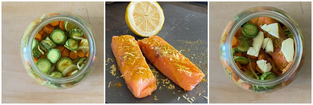 Comment faire le saumon avec légumes en cuisson en bocal ?