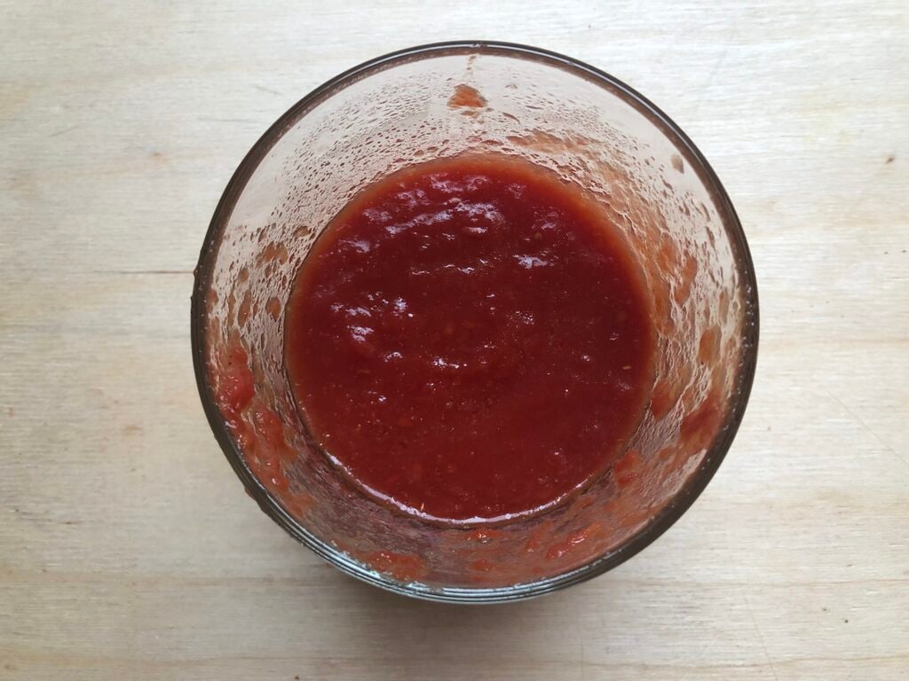 Assaisonner la pulpe de tomate avec une généreuse pincée de sel et une cuillerée d’huile.