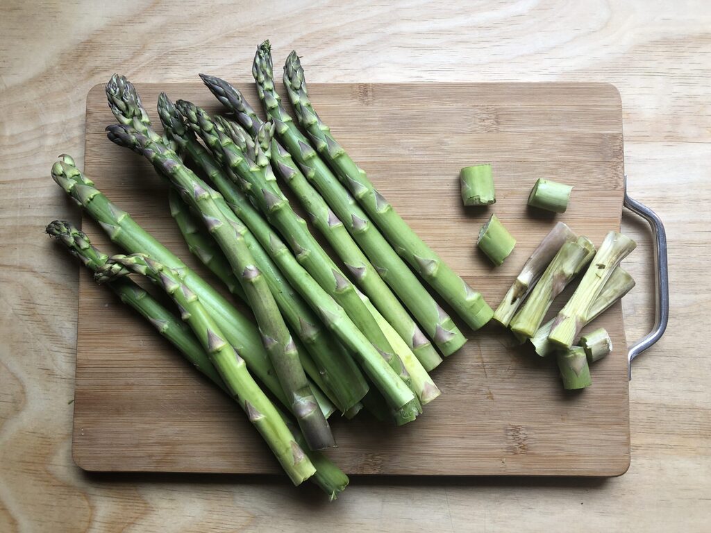Nettoyez les asperges en retirant la partie finale de la tige (la plus dure et ligneuse); puis lavez-les bien sous l’eau courante.
