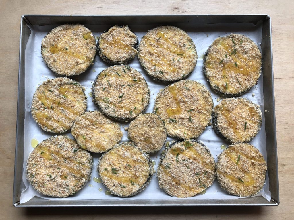 Disposer les aubergines savoureuses au fur et à mesure sur une plaque recouverte de papier sulfurisé. Les saler à votre goût et les arroser d’un filet d’huile.