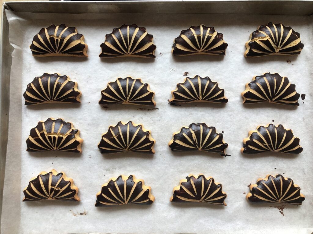 • À ce stade, badigeonner chaque biscuit avec le mélange au cacao.