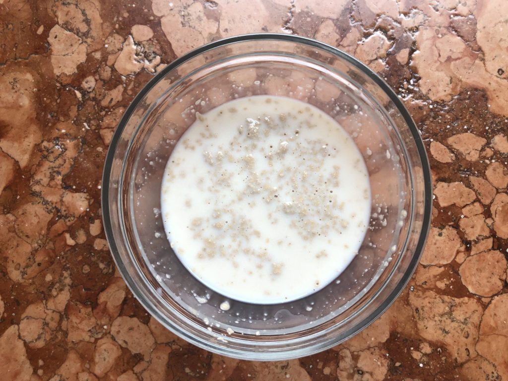 • Mélanger la levure (sèche ou fraîche) dans le lait tiède avec une cuillère à café de sucre prise dans le total.