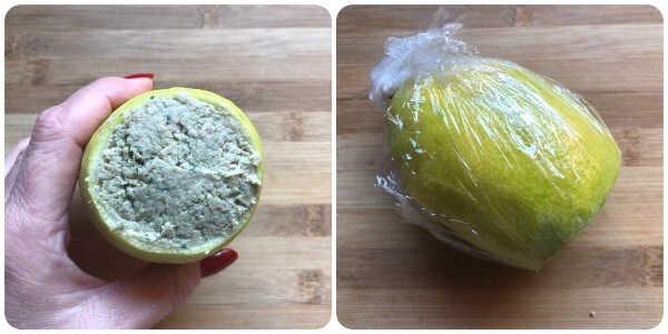 Remplissez le citron avec la crème obtenue, bien la presser pour éviter de laisser des espaces vides; puis couvrez avec le film alimentaire et mettez au congélateur.