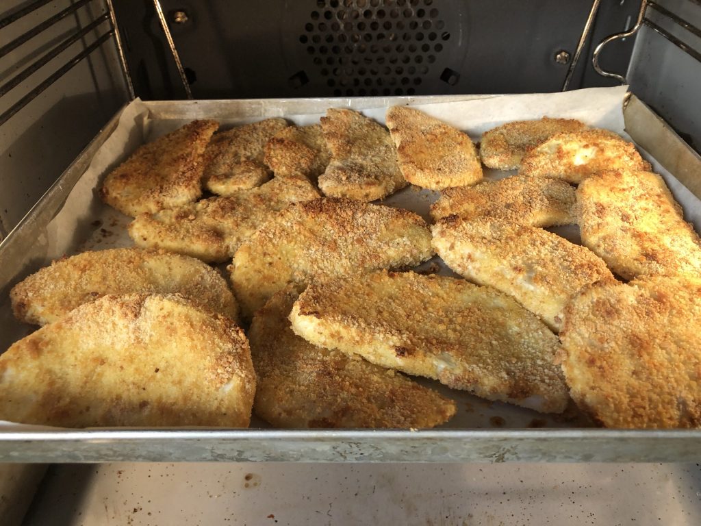 Mettre quelques cuillères à soupe de farine dans un deuxième bol et de la chapelure dans un troisième.
