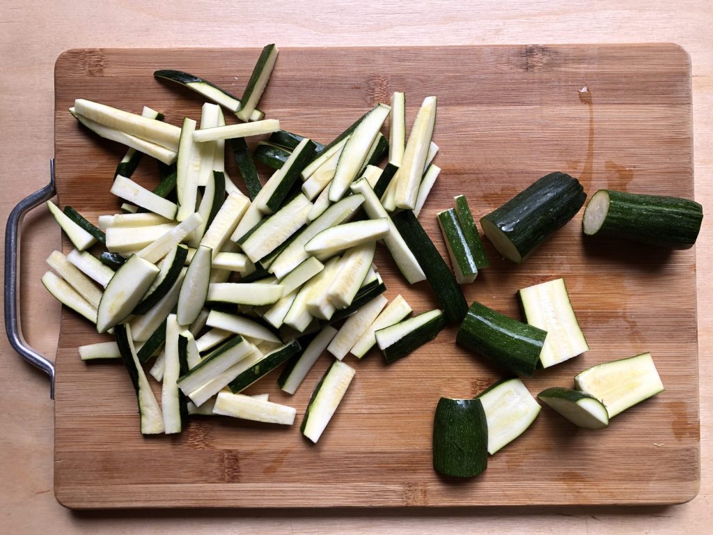 Lavez les courgettes, épluchez-les et coupez-les en bâtonnets avec l’outil approprié ou en suivant la procédure décrite ICI.
