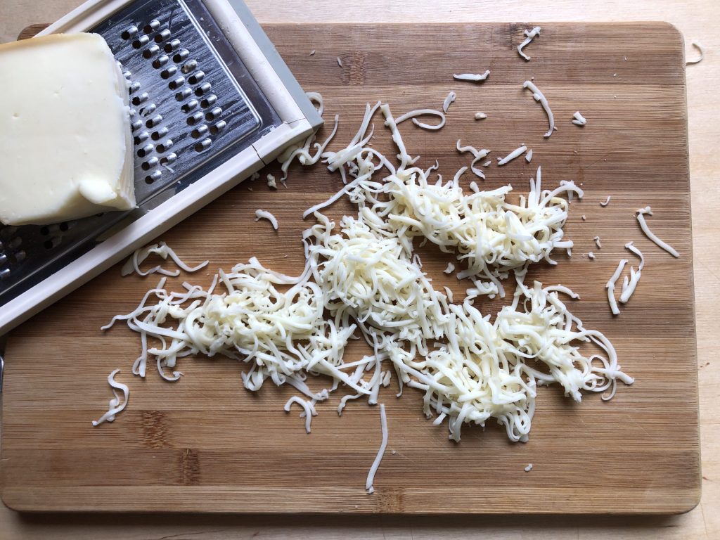 Pendant ce temps, râpez la scamorza en julienne avec une râpe à gros trous.
