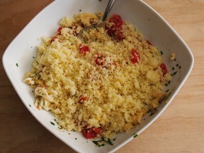 • Dans une petite poêle (ou une poêle à frire), cuire le couscous selon les instructions sur l’emballage; bien l’égrener avec une fourchette et l’ajouter aux autres ingrédients.