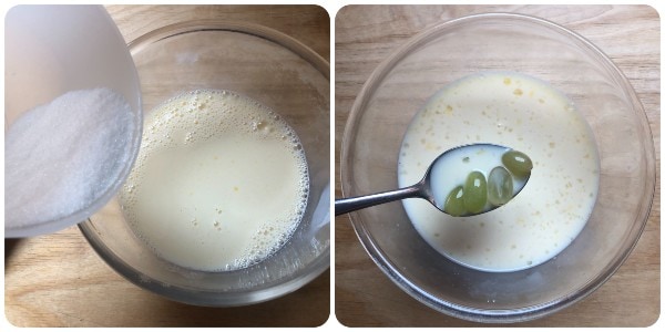 • Ensuite, ajouter le sucre et les raisins.