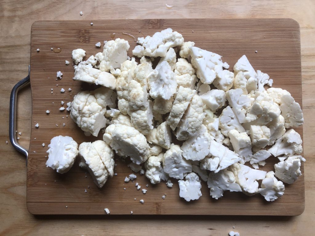 Nettoyer le chou-fleur, le laver soigneusement sous l’eau courante et le couper en morceaux.