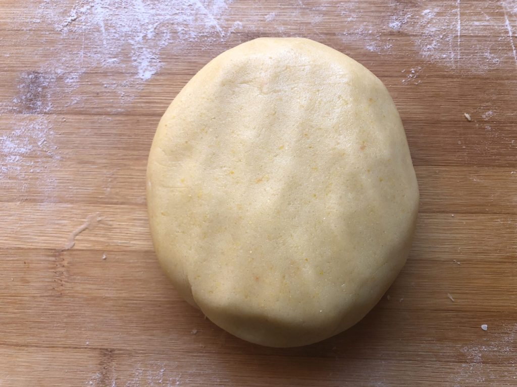 J’ai préparé la pâte avec le Thermomix, mais on peut très bien la faire à la main. Dans ce cas, je vous suggère d’utiliser du sucre glace et du zeste d’orange râpé. Pour le reste, il suffit de mélanger d’abord les ingrédients secs dans un bol, puis d’ajouter le beurre en morceaux et de le travailler du bout des doigts jusqu’à obtenir une consistance sableuse. À ce stade, incorporez l’œuf et pétrissez rapidement, juste le temps de former une boule lisse et compacte.