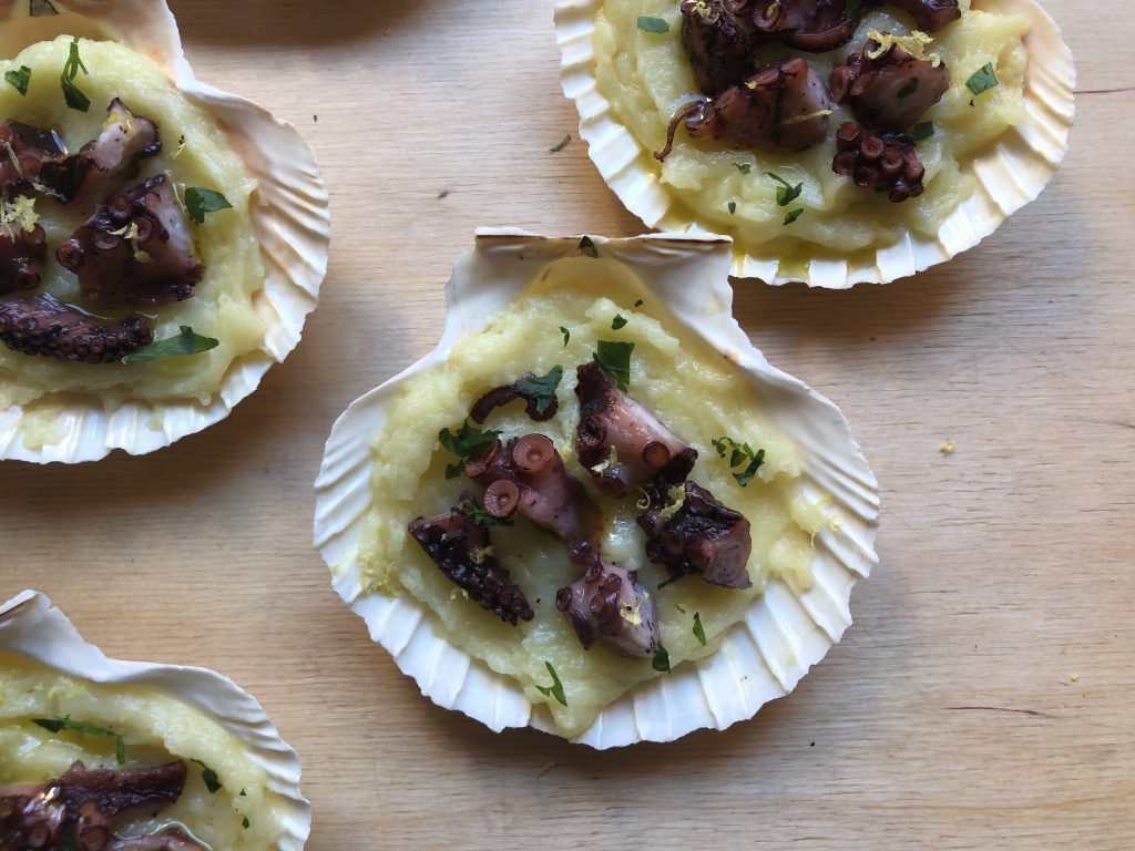 entrée de poulpe sur crème de pommes de terre