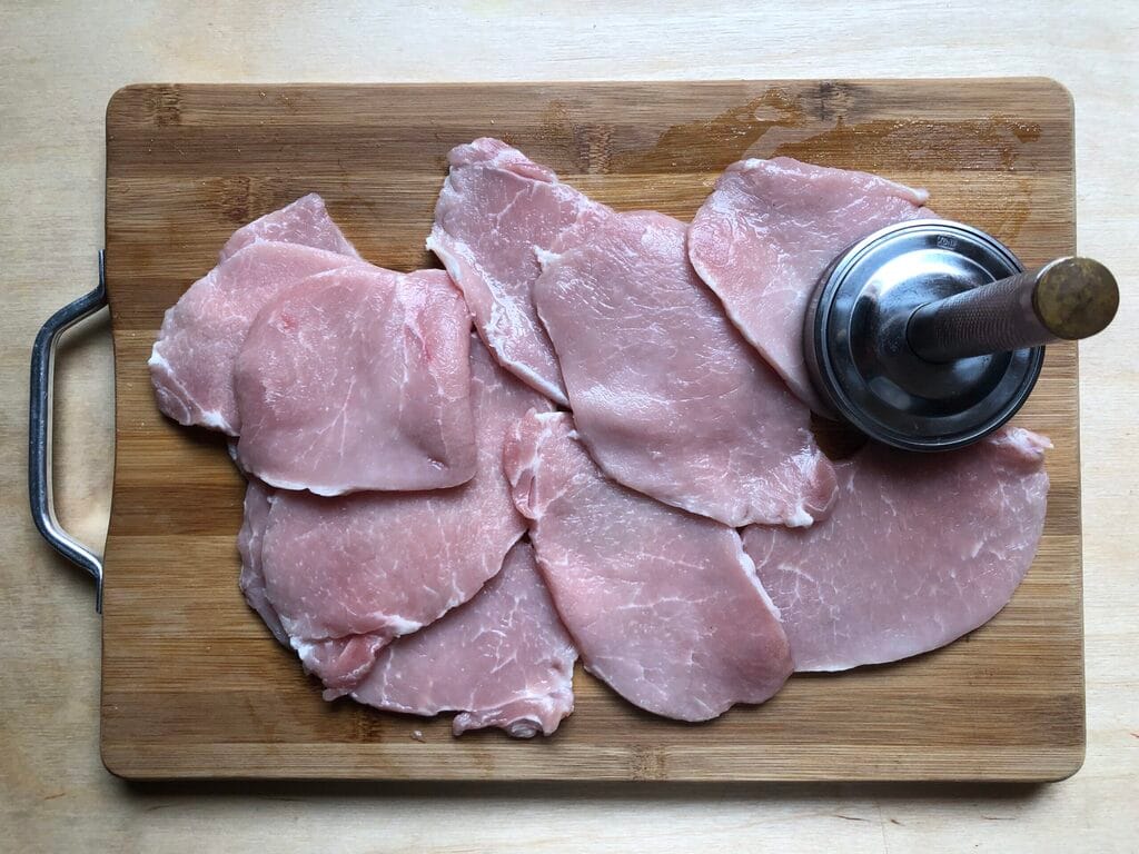 Battez légèrement les tranches de viande pour les amincir un peu et les débarrasser des éventuelles parties grasses.