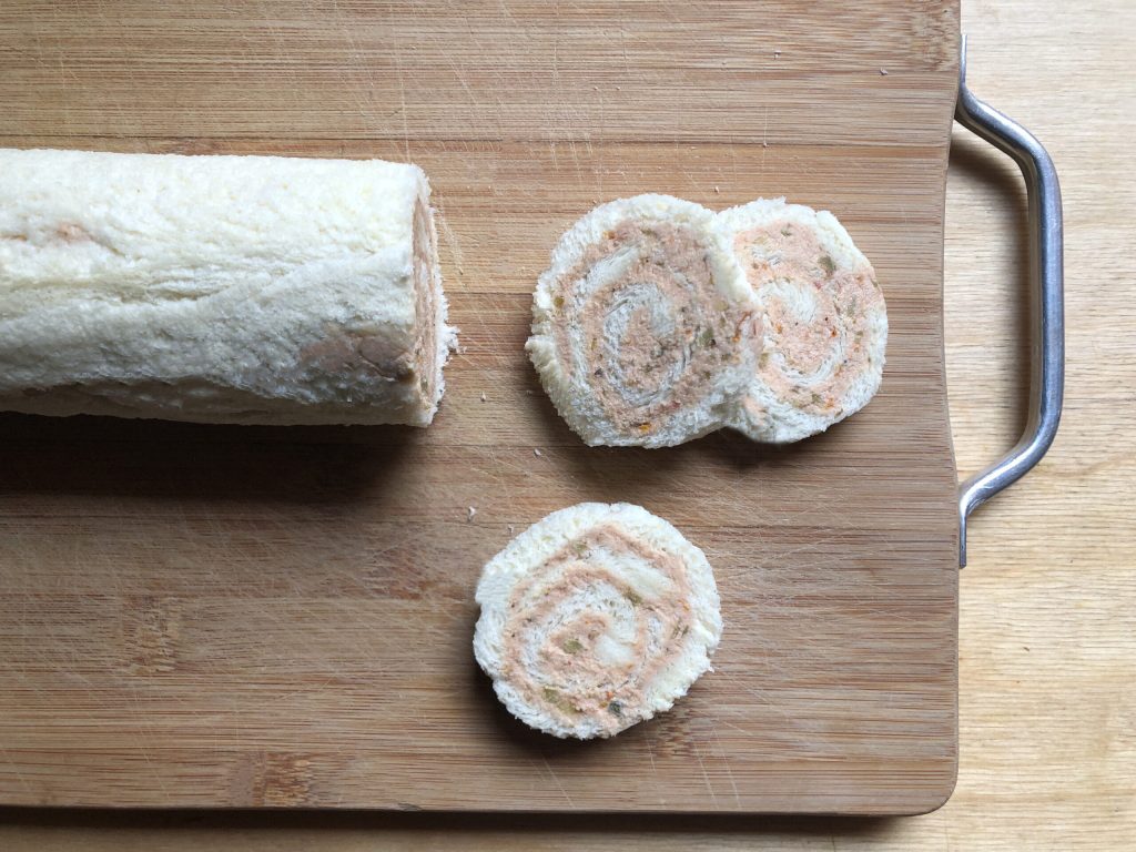 Je vous conseille d’utiliser du pain de mie en tranches longues plutôt que carrées et petites. Ce sera plus facile de réaliser le rouleau.