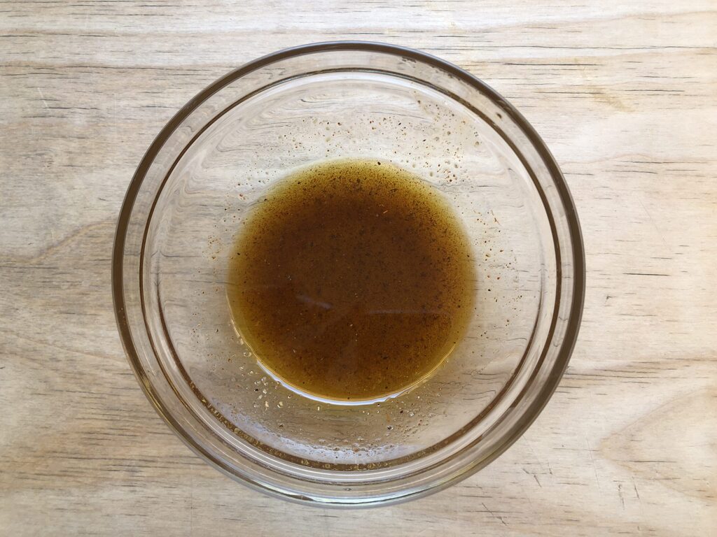 Verser l’huile dans un petit bol, ajouter deux pincées de sel, une bonne mouture de poivre noir, une pincée d’ail en poudre et du paprika à doser selon le goût personnel (vous pouvez le choisir doux ou fumé selon vos préférences). Bien émulsionner le tout jusqu’à obtenir une sauce homogène.