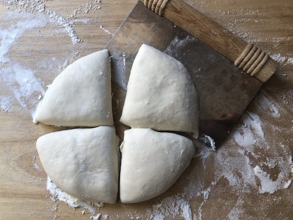 Après le temps de repos, diviser la pâte en 4 morceaux.