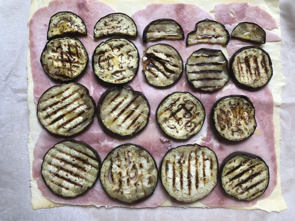 Préparation du feuilleté aux aubergines