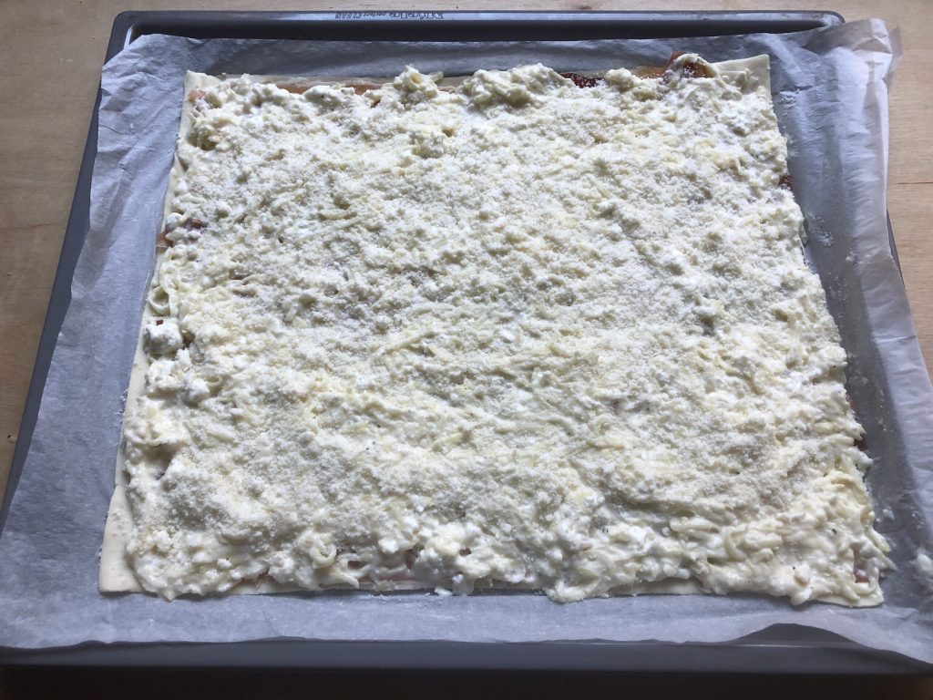 Couvrir maintenant la pâte feuilletée avec les tranches de speck enlevant les éventuelles parties grasses.