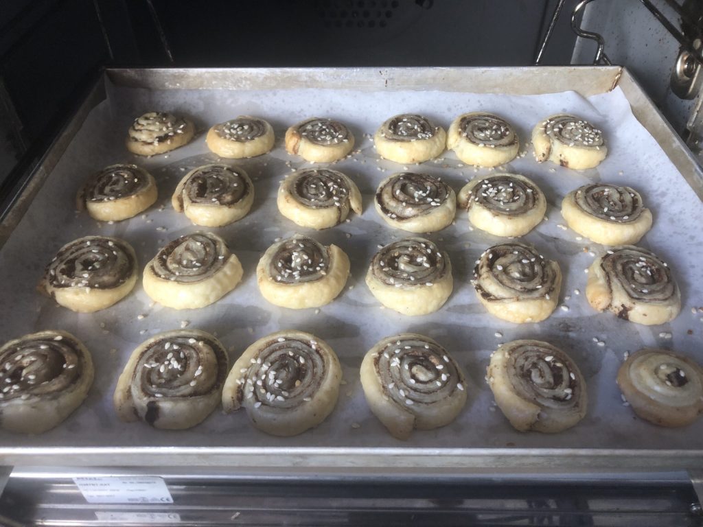 Disposez-les au fur et à mesure sur une plaque recouverte de papier sulfurisé, en les espaçant car elles gonfleront à la cuisson. Parsemez-les d’un peu de graines de sésame.