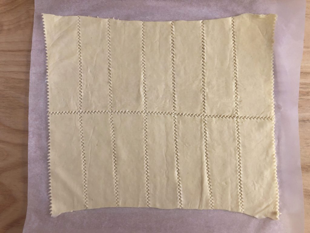 Avec chaque rouleau de pâte feuilletée, on réalise 14 feuilletés.