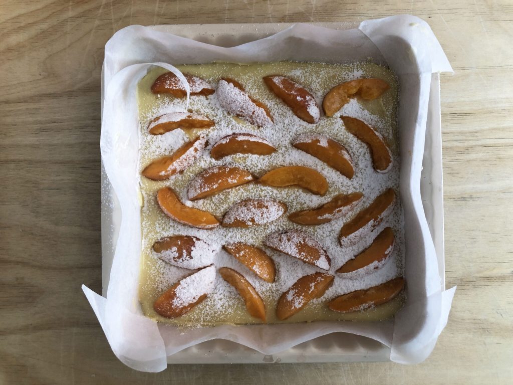 • Verser la pâte dans le moule précédemment préparé et y disposer les quartiers d’abricots.