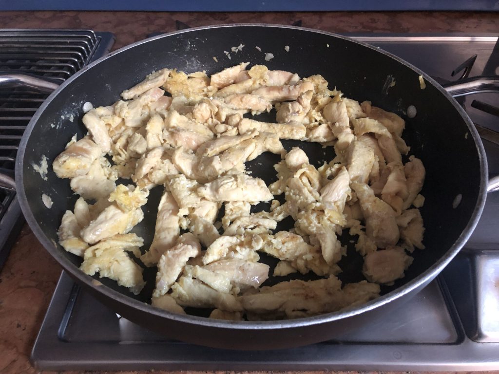 Préparation de la fricassée de poulet brouillée