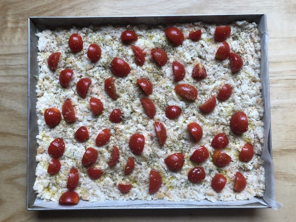 À ce stade, répartissez le pain sur une plaque recouverte de papier sulfurisé et aplatissez-le avec un pilon ou le dos d’une cuillère jusqu’à ce qu’il soit bien compact.