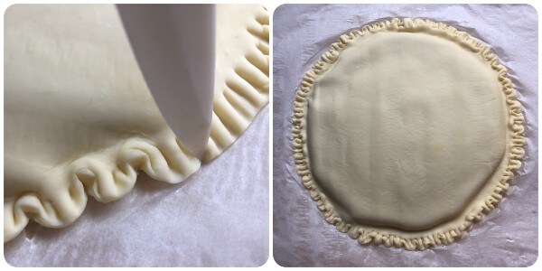 À la fin de cette première période de refroidissement, avec la pointe d’un petit couteau, replier le bord de pâte vers l’intérieur en créant un motif décoratif.