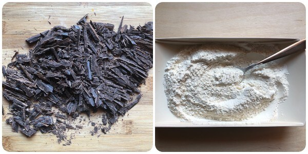 Avec un couteau, réduire le chocolat en copeaux grossiers.