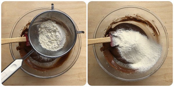 Ajoutez ensuite la farine en la tamisant avec la levure à travers une passoire à mailles fines.