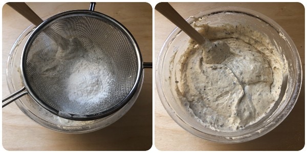 Enfin, ajouter également la levure en la tamisant à travers la passoire et l’incorporer avec une spatule.