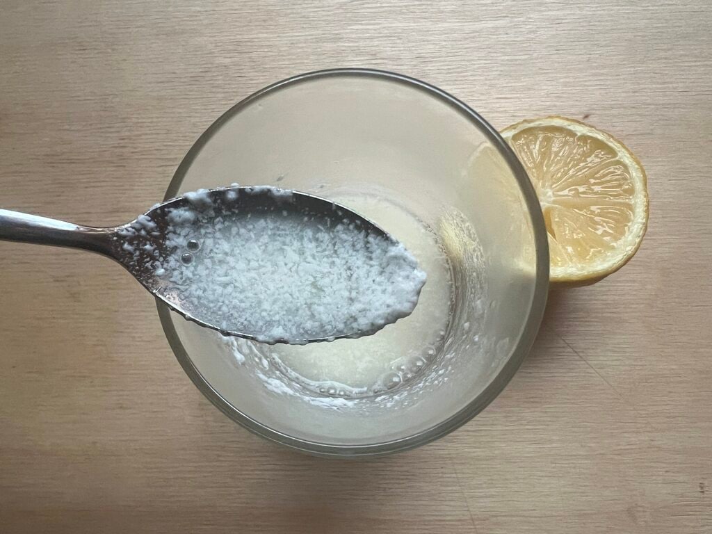 Tout d’abord, préparez le buttermilk aussi appelé lait fermenté qui rendra notre gâteau moelleux : ajoutez deux cuillères à café de jus de citron au lait chaud (chaud, pas bouillant et même pas juste tiède) et laissez-le reposer pendant environ dix minutes pendant que vous pesez les différents ingrédients. Il sera prêt lorsqu’il se formera des flocons. Mettre de côté.