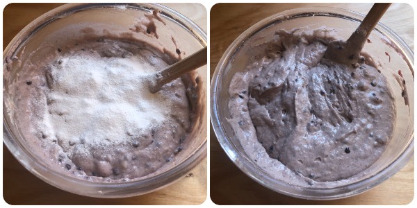 Maintenant, reprenez les mûres macérées et écrasez-les avec une fourchette ou un presse-purée, puis versez le tout dans le bol et mélangez à la pâte.