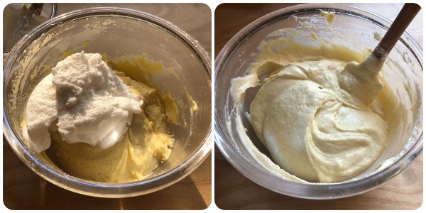 Lorsque toute la farine sera bien mélangée à la pâte, ajoutez en plusieurs fois les blancs d’œufs montés en travaillant le mélange avec des mouvements délicats de bas en haut pour éviter de le faire retomber.