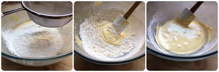 Incorporer la fécule de maïs et la vanilline en les tamisant à travers une passoire à mailles fines et les incorporer avec une spatule.