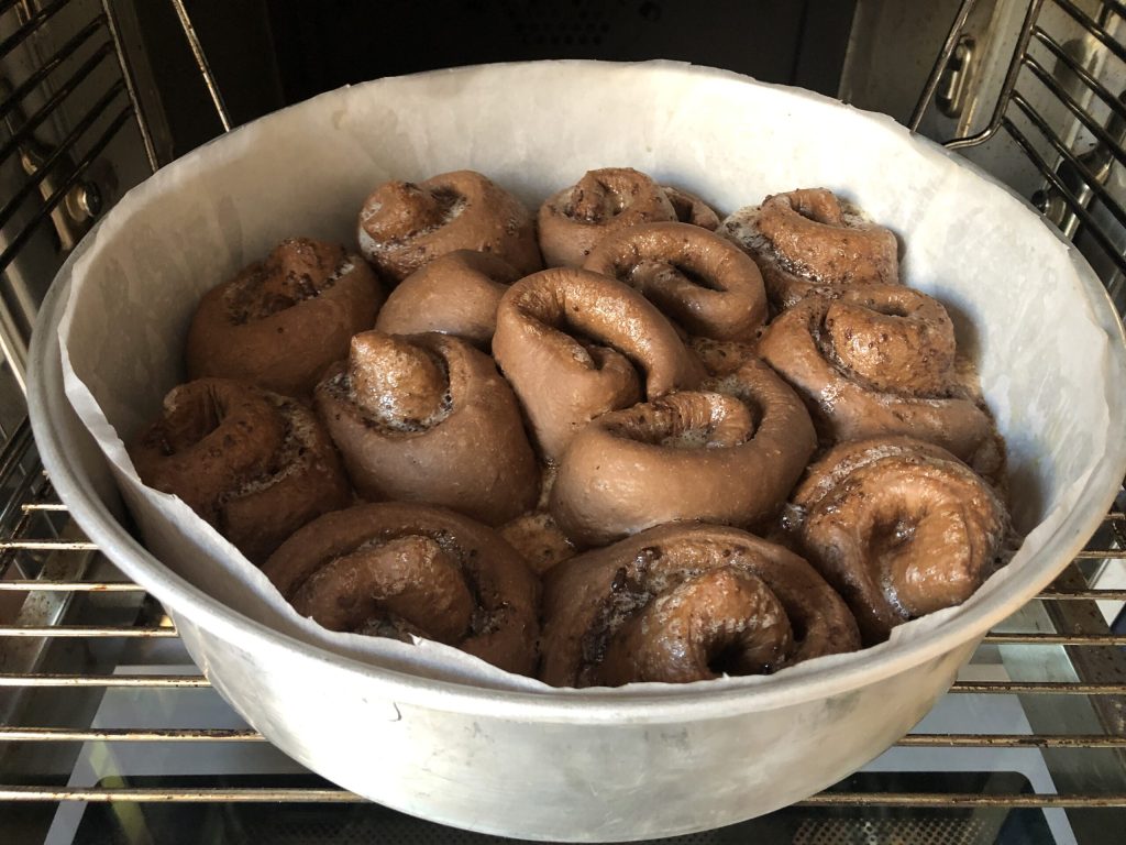 Couvrir avec un torchon et laisser lever jusqu’à ce que les roses aient doublé de volume et se soient unies entre elles. Je les ai laissées reposer pendant presque 4 heures.