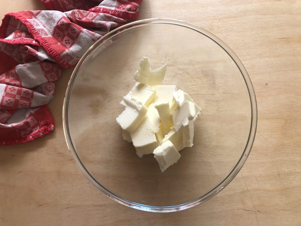 Mettre le beurre en morceaux dans un grand bol et le laisser ramollir à température ambiante.
