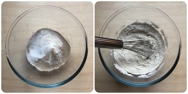 • Mettre dans un bol moyen-petit la farine, la levure de bière sèche, le sucre et mélanger avec un petit fouet à main.