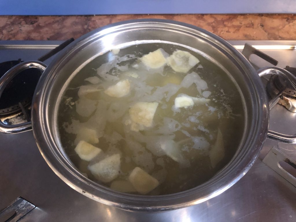 Lorsque l’eau bout, y plonger les tranches de gingembre et les cuire pendant 10/12 minutes.