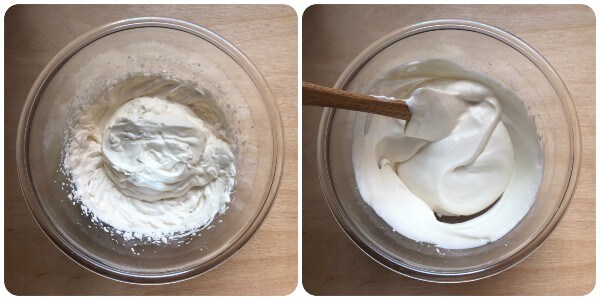 Ensuite, incorporer la crème fouettée au fromage en mélangeant le mélange avec une spatule.