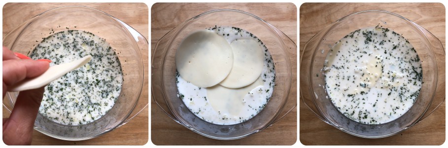 À ce stade, immerger les tranches de provolone dans le lait (je vous conseille de les faire trancher au moment de l’achat si vous n’avez pas de trancheuse), couvrir et laisser macérer pendant au moins une heure.